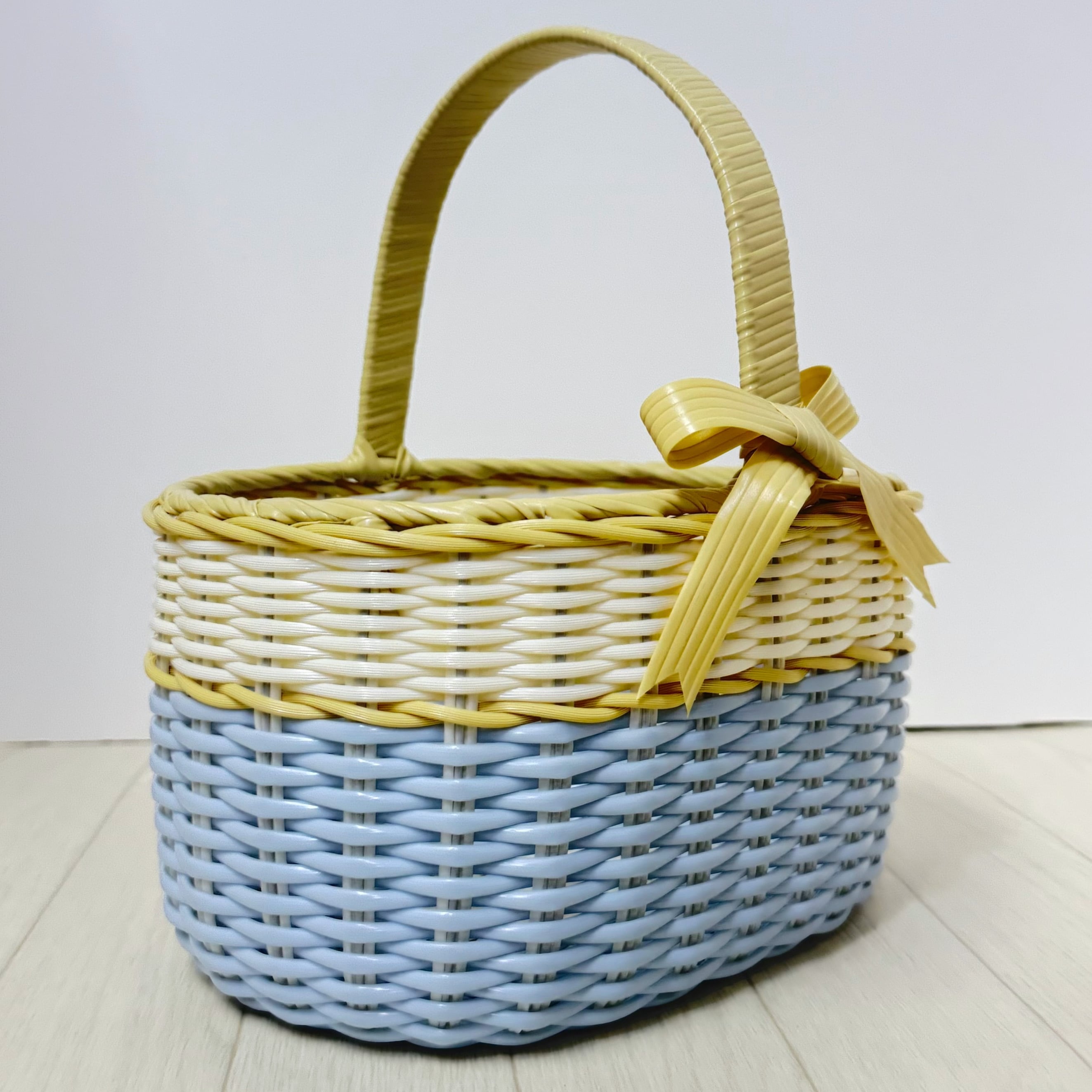 こちらの商品は、BASE限定の「ひとみちゃん」です。パステルブルーとアイボリーのツートンカラーが魅力的で、小さなサイズ感が特に可愛らしい印象を与えます。フルユワイメージのデザインは、どんなシーンでもおしゃれでアンニュイな雰囲気を演出してくれます。
